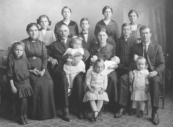 In front of Carrie is Verna Hagen and in front of John is Ella Hagen.