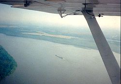 Once at the lonely airport I preflighted the airplane and took off as the officer watched from his police cruiser, as if presiding over a special event in his kingdom. Turning southeast we had a smooth ride over the rice fields with their winding dikes that I had heard about the night before. The rolling Mississippi River came into view, reflecting the morning sun in a flash of brilliance. Several barges were negotiating its snake-like curves. We were nearing Clarksdale, Mississippi, the destination we had failed to reach on Saturday. I hoped the FBO would be open on this Sunday morning. There were no lights visible, but the door was open. I went in and found a man in the dimly lit office. I noticed 2 of the 3 sets of fluorescent lights were out. Perhaps they faded gradually, hardly noticed by those working there. I asked for fuel and oil. He silently dug around in a closet, looking for something, then went out to the plane with hardly a word. As he fueled the TriPacer, I added brake fluid, thinking how I expected people in Mississippi to be more friendly. I paid with my fuel credit card, and turned to leave. He came from behind the counter and told me he flew a Colt once. Didn't really remember if he had ever flown a TriPacer - wasn't one in his logbook. He had flown an Aeronca and a Cub though. Mississippians were friendly after all! We talked of flying for several minutes and I was off.